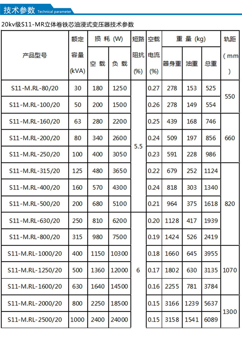 . S11-M.RL-/10-20 、S13-M.RL-/10-20 立體三角形卷鐵心變壓器有10kV 及20kV 兩種電壓兼容的產品系列,在10kV 電網向20kV電網過渡更新時期.極大的方便了用戶。